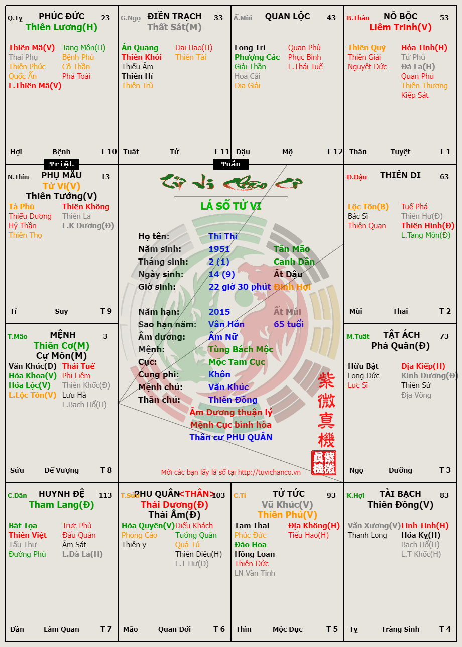 Lá số Tử Vi - Thi Thi