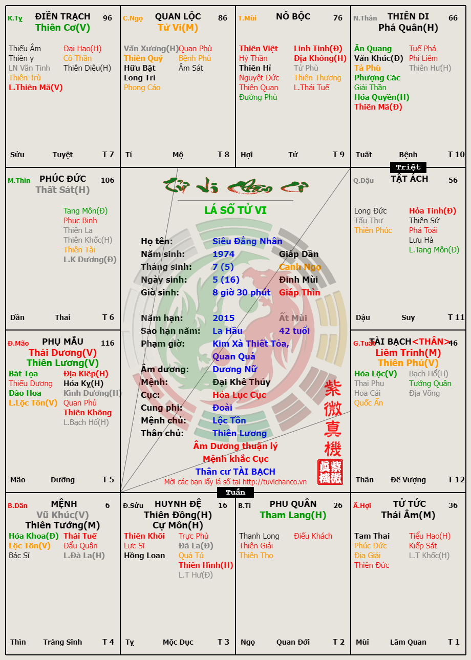Lá số Tử Vi - "Siêu Đẳng Nhân"