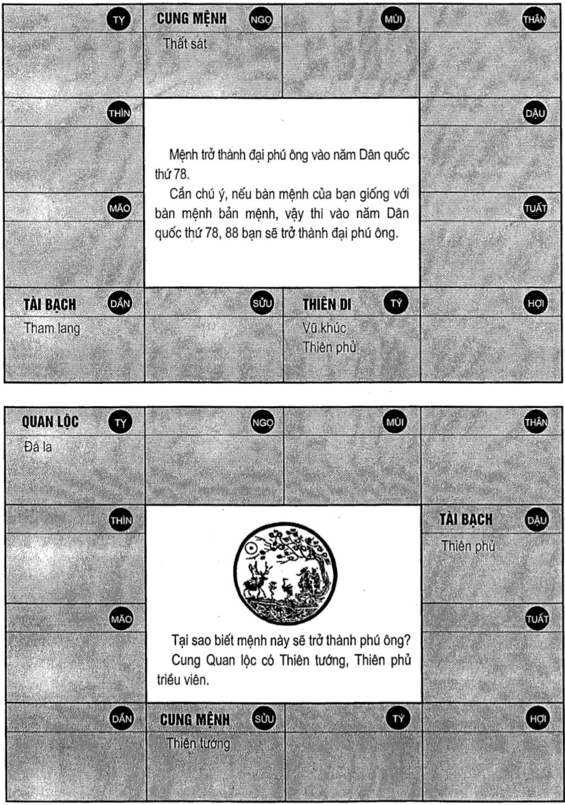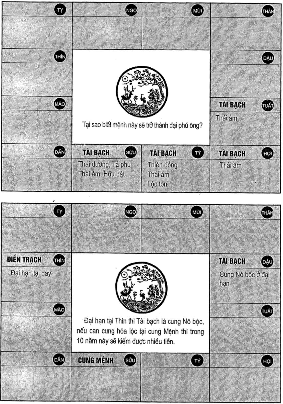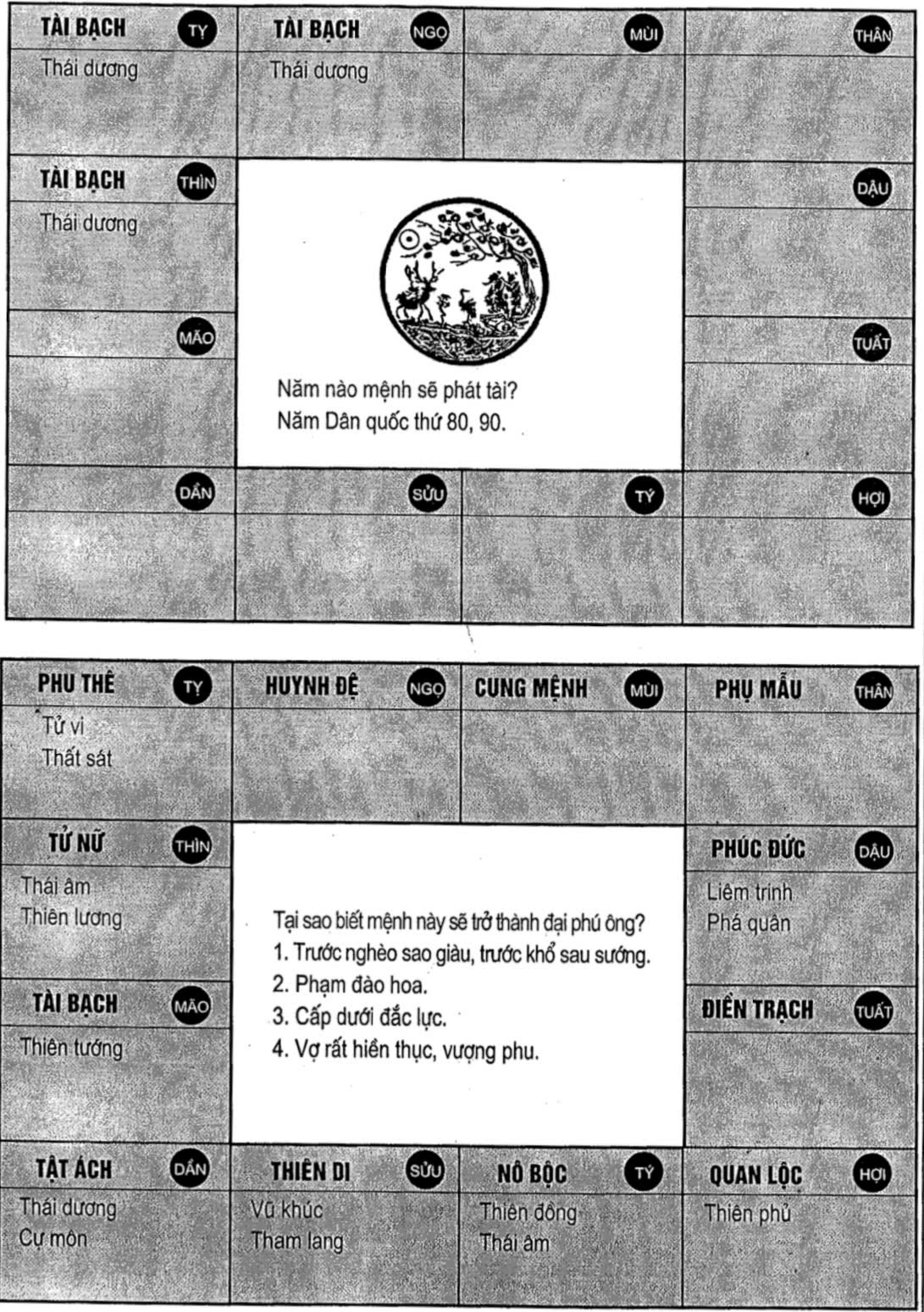 Nghiên cứu kỹ thêm thì phát hiện ra rằng, trước và sau cung Tài Bạch có Tả Phù, Hữu Bật ép lại, lại có Thái Dương, Thái Âm cùng tới, cho nên sẽ trở thành đại phú ông.