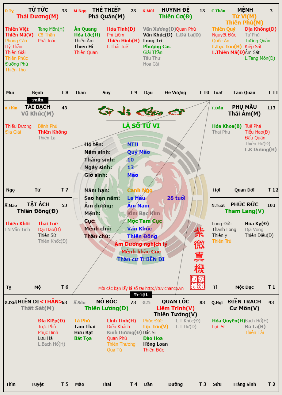 Lá số Tử Vi - Cụ Nguyễn Thái Học