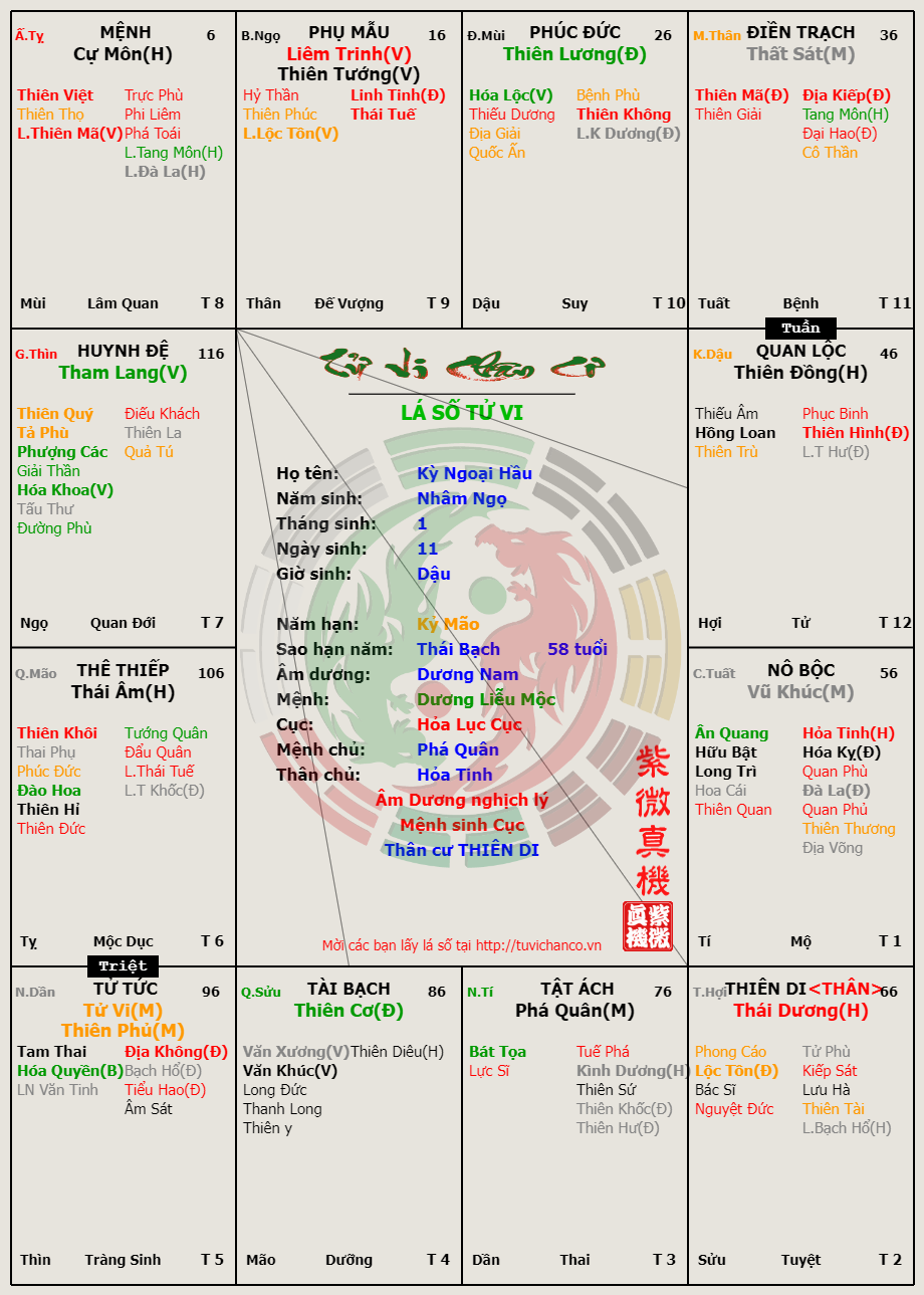 Lá số Tử Vi - Ông Kỳ Ngoại Hầu