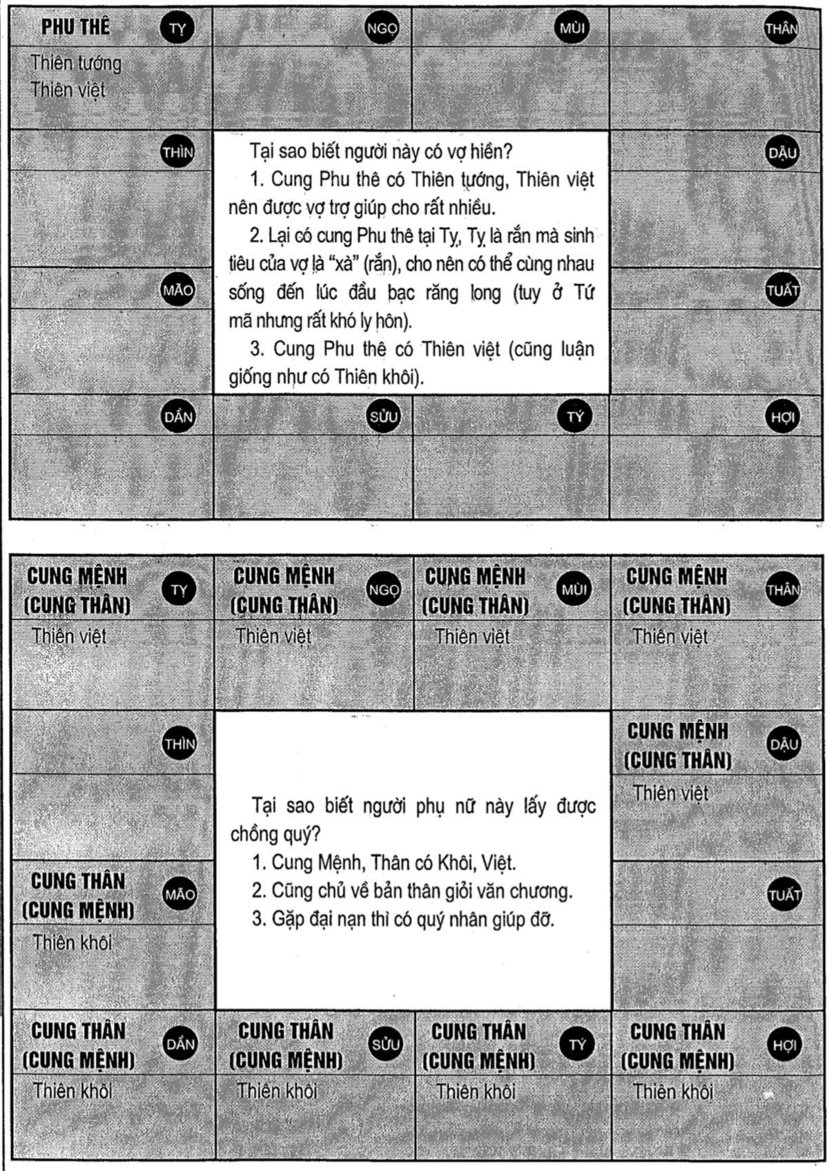 Người mà Thiên Khôi hoặc Thiên Việt tọa ở cung Phu Thê thì chủ về vợ biết chăm lo cho gia đình, có thể giúp gia đình hưng vượng, phát tài.