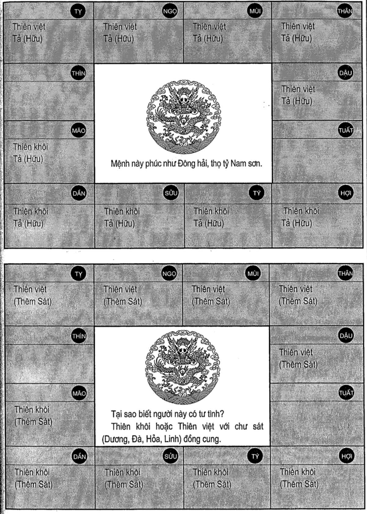 Các sách đều xem Thiên Khôi, Thiên Việt, Thiên ất quý nhân là những sao tác động từ tuổi 40 trở về sau, gặp sao này thì không lấy cát lợi mà luận bàn.
