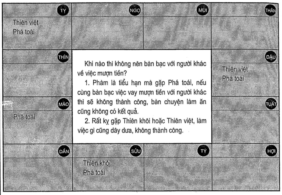 Ví dụ: Phan Tử Ngư đem Thiên Khôi tại Dưỡng, Thiên Việt tại Suy, không ở Mộ khố, cho nên tiểu hạn nếu gặp 2 sao này thì mệnh có quý nhân phù trợ.