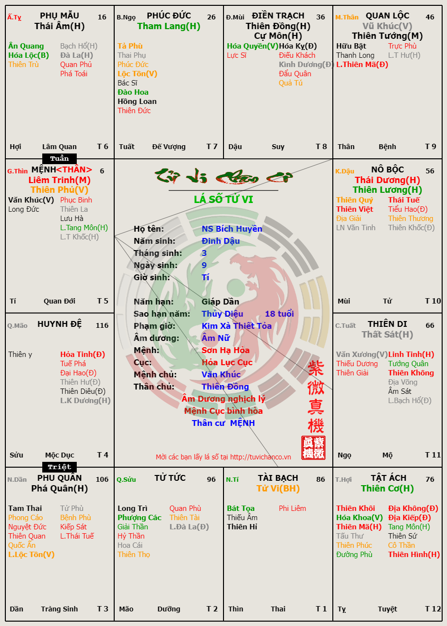 Lá số Tử Vi - Nghệ Sĩ Bích Huyền