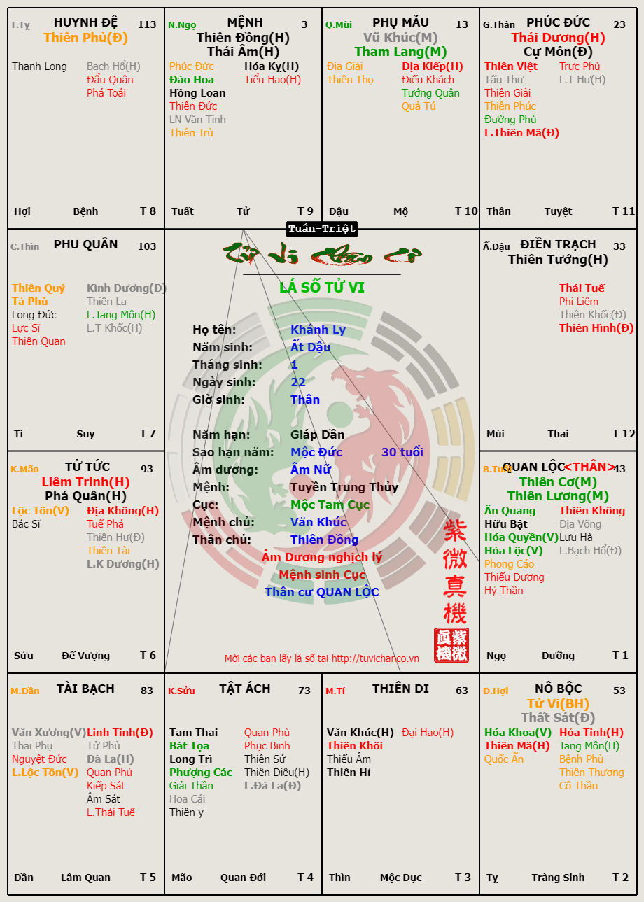 Lá số Tử Vi - Nghệ Sĩ Khánh Ly