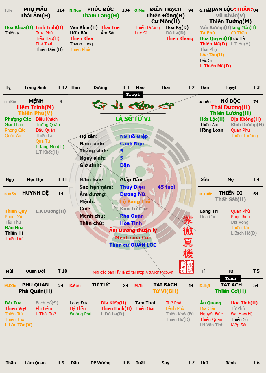 Lá số Tử Vi - Nghệ Sĩ Hồ Điệp
