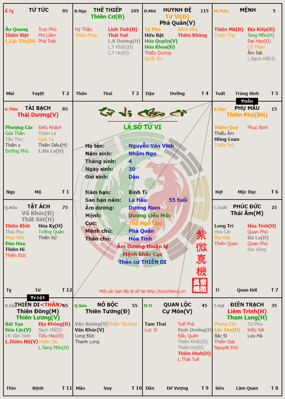 Lá Số Tử Vi - Ông Nguyễn Văn Vĩnh