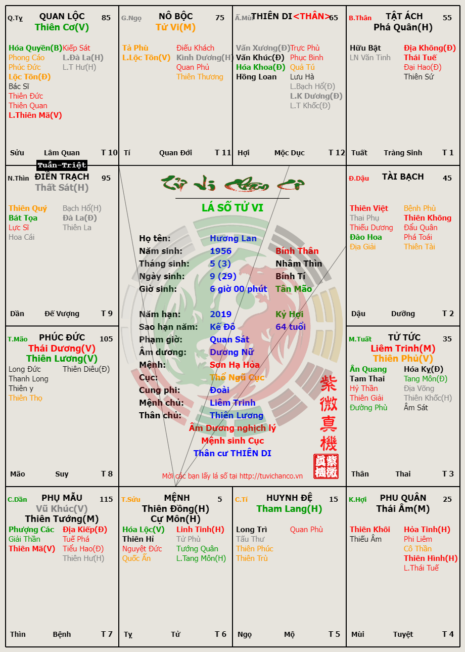 Lá Số Tử Vi - Ca Sĩ Hương Lan