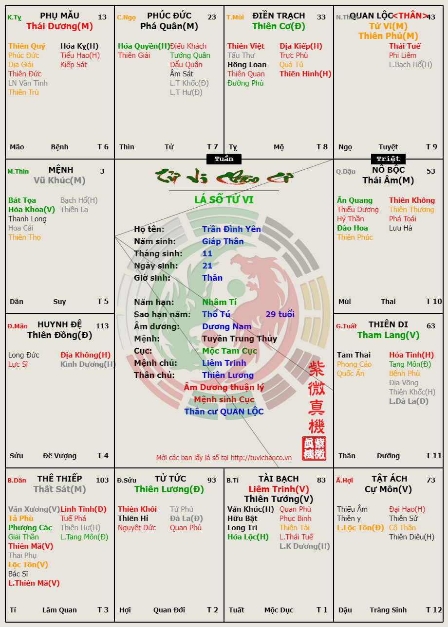 Lá số Tử Vi - Tử tù Trần Đình Yên