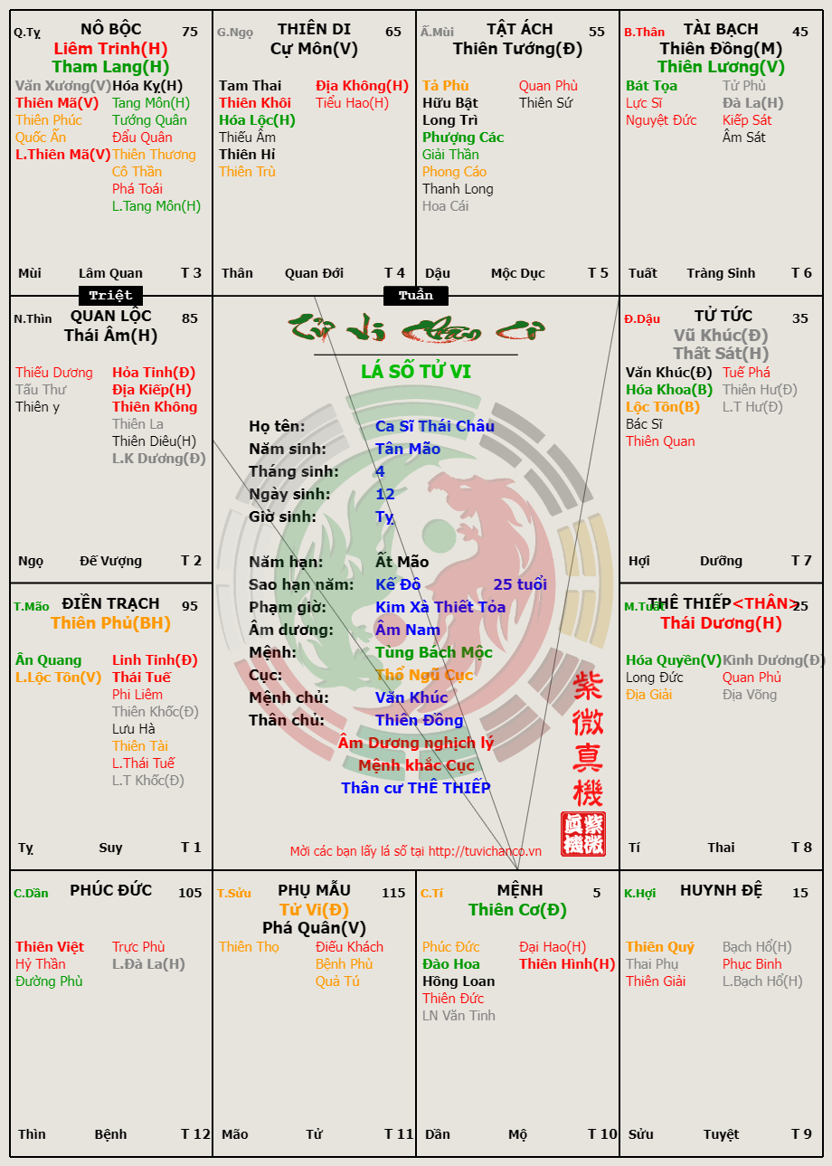 Lá Số Tử Vi - Ca Sĩ Thái Châu