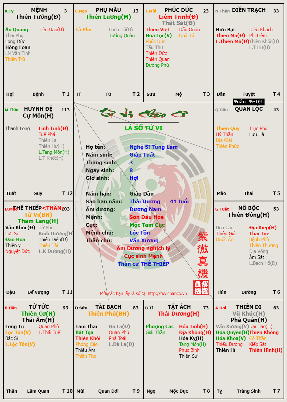 Lá số Tử Vi - Nghệ Sĩ Tùng Lâm