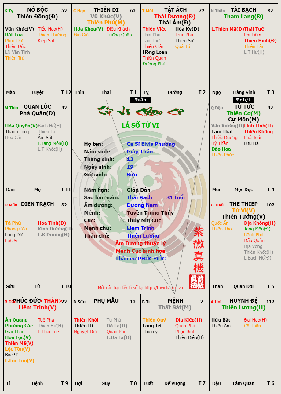 Lá số Tử Vi - Ca sĩ Elvis Phương
