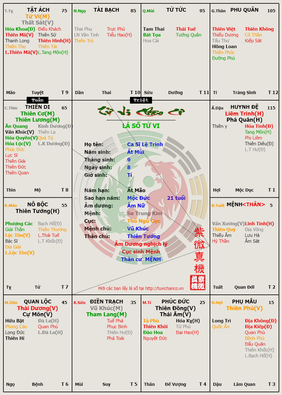 Lá số Tử Vi - Ca Sĩ Lệ Trinh