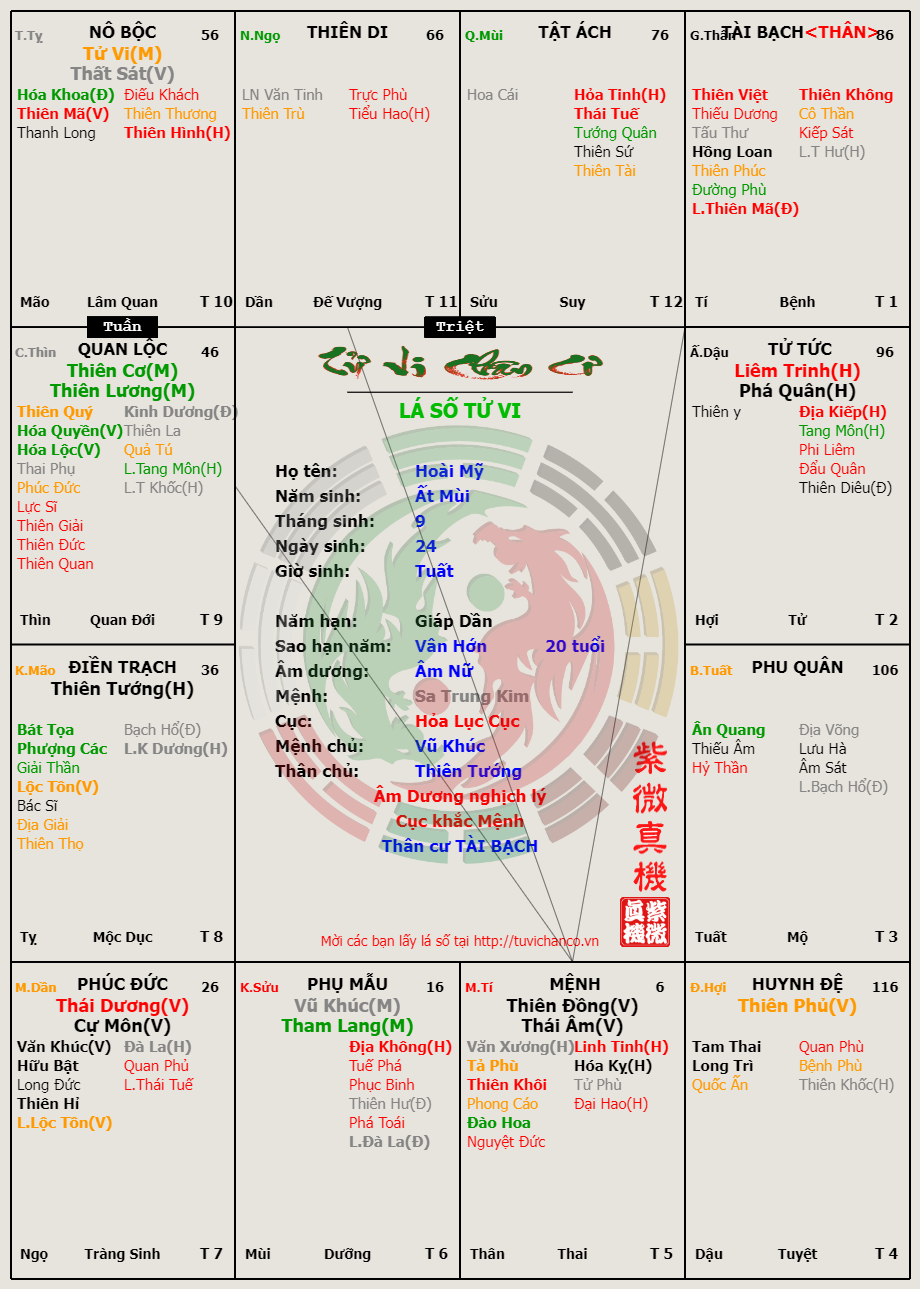 Lá số Tử Vi - Nữ minh tinh Hoài Mỹ