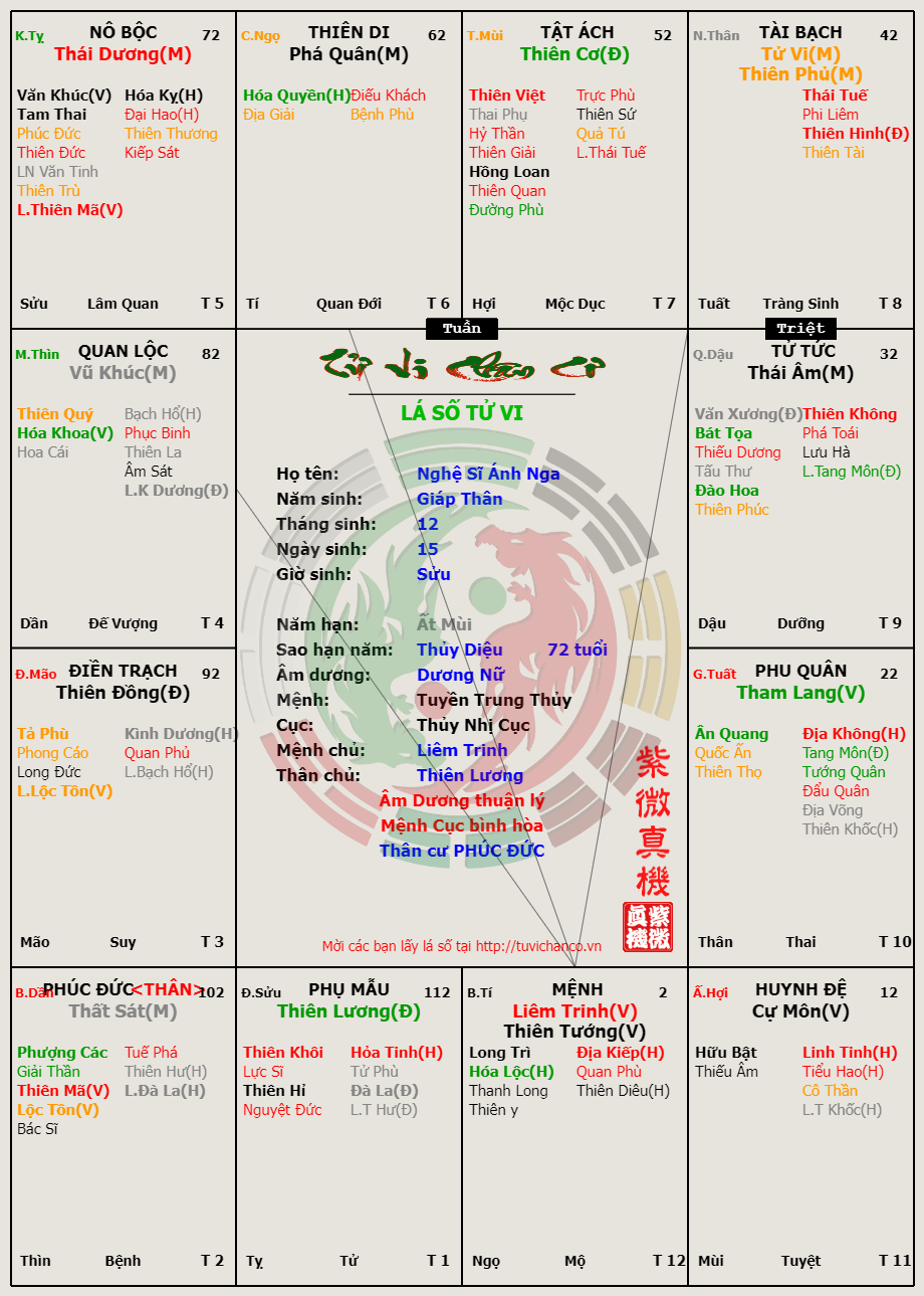 Lá Số Tử Vi - Nghệ Sĩ Ánh Nga