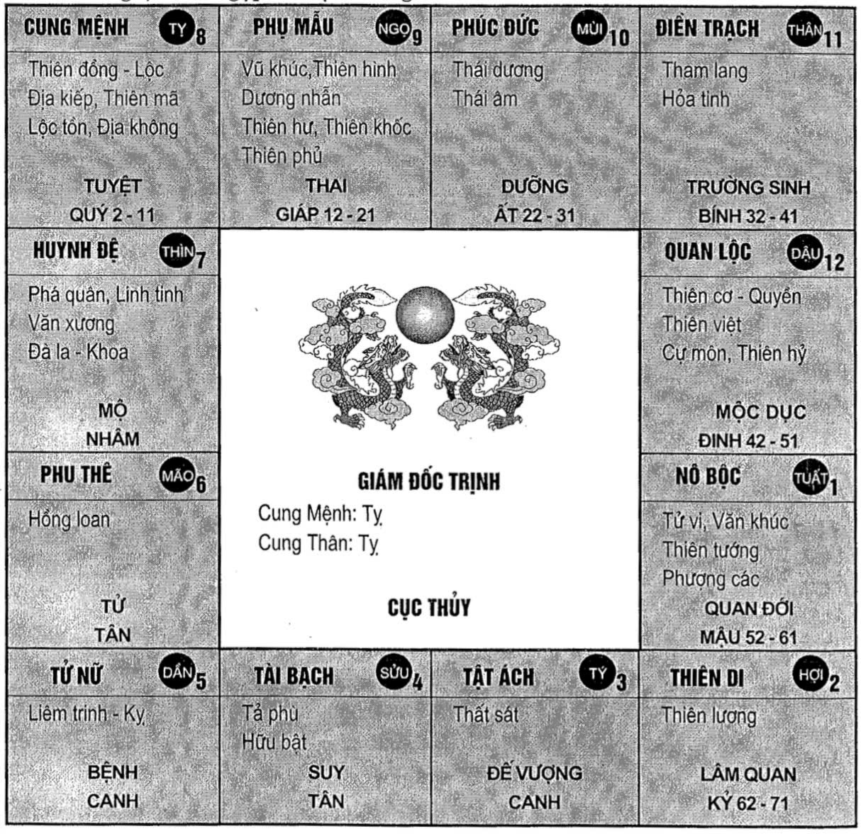 Có thể đưa ra ví dụ về bàn Mệnh của ông Trịnh như sau: Sinh vào giờ Ngọ, ngày 18, tháng 10, năm Dân quốc thứ 25.