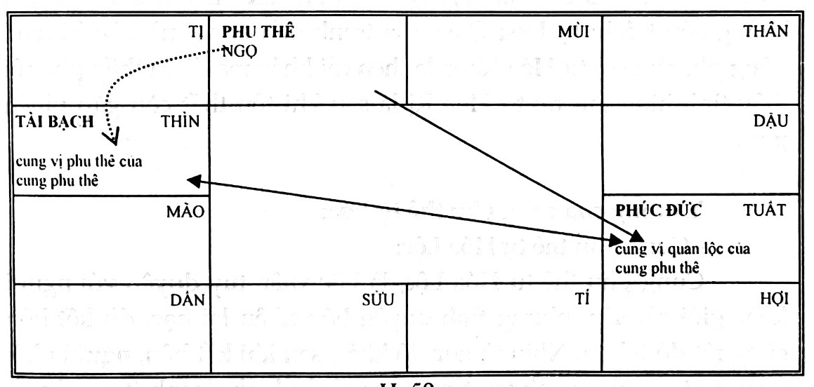 Nam mệnh, muốn biết người phối ngẫu như thế nào? Phải xem cung phu thê. Muốn biết mệnh tạo như thế nào? Thì phải xem cung tài bạch, vì cung tài bạch là cung vị phu thê của cung phu thê, tức là mệnh tạo. Theo người xưa, nữ mệnh, muốn xem người phối ngẫu như thế nào phải xem cung phúc đức, vì cung phúc đức là cung vị chồng, mà nữ mệnh lấy chồng làm quý, cho nên lúc muốn xem tình hình đối đãi nhau, nữ mệnh phải xem cung vị quan lộc của cung phu thê, tức phải xem tình hình phi cung hóa tượng của cung phúc đức như thế nào.