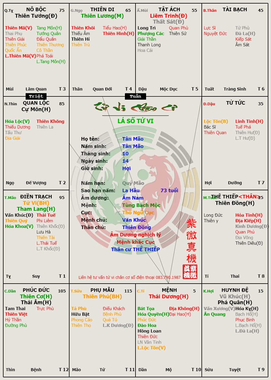 b- Tân Mão sinh ngày 14 tháng 10 giờ Hợi