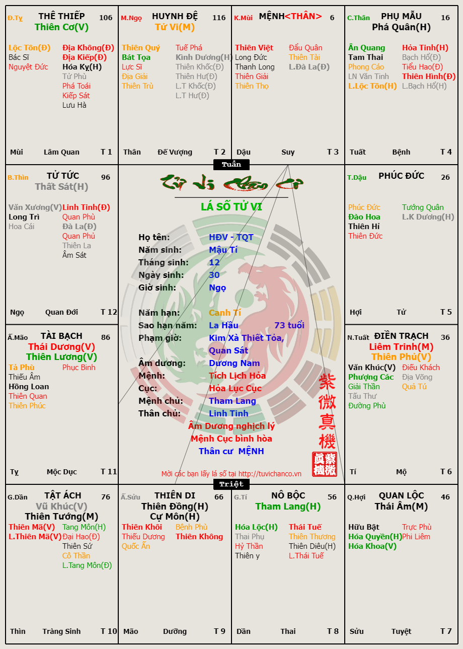 Lá Số Tử Vi - Hưng Đạo Vương Trần Quốc Tuấn