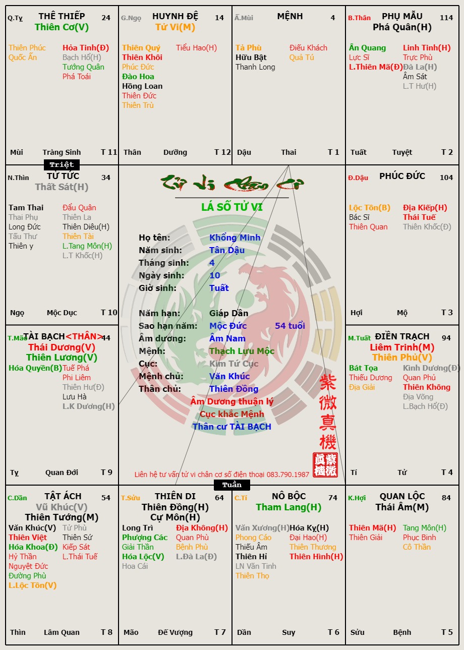 Tuổi Tân Dậu ngày 10 tháng 4 giờ Tuất (Khổng Minh)