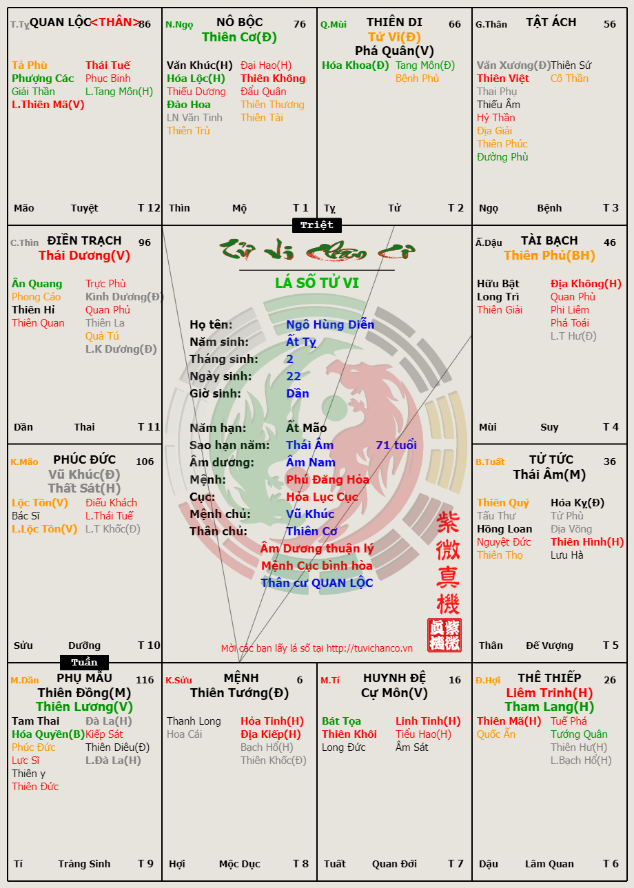 Lá số Tử Vi - Cụ Ngô Hùng Diễn