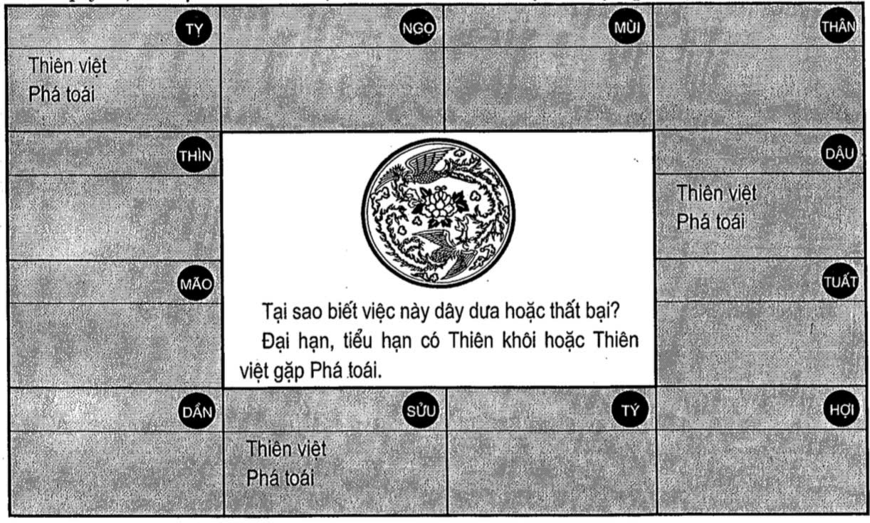 Sao này cũng kỵ đồng cung với Thiên Khôi hoặc Thiên Việt, vì như vậy thì sức phá hoại sẽ rất mạnh, phàm là việc ký kết, vay mượn, làm ăn mà gặp Phá Toái thì đều không thành, hoặc dây dưa, kết quả thất vọng.