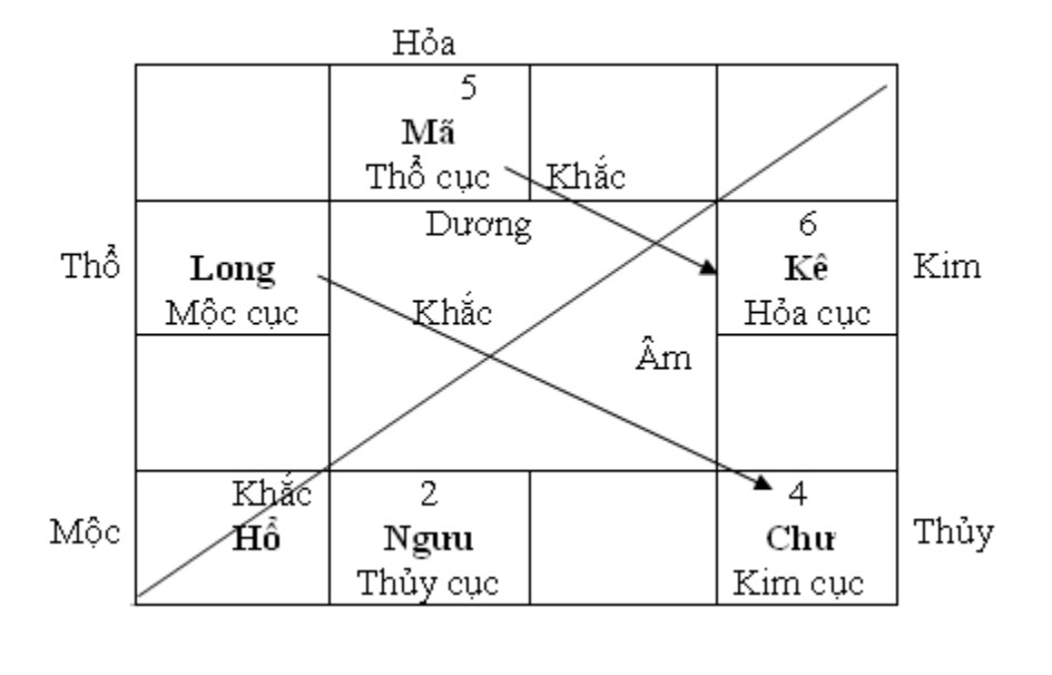 Sự việc Thủy phải đặt ở vị trí Thủy nhị cục cũng vẫn dẫn đầu trong Ngũ hành và Hỏa đặt tụt xuống tư thế lục cục cũng không phải kém thế. Tóm lại chỉ có 2 là Mộc tam cục và Thổ ngũ cục, bên Âm đa số hơn gồm Thủy nhị cục, Kim tứ cục và Hỏa lục cục, nhưng bên Dương sức phấn đấu vẫn lấn khắc chế bên Âm để cho hai thế Âm Dương được cân phân trên hai hình thức đa số và năng lực.