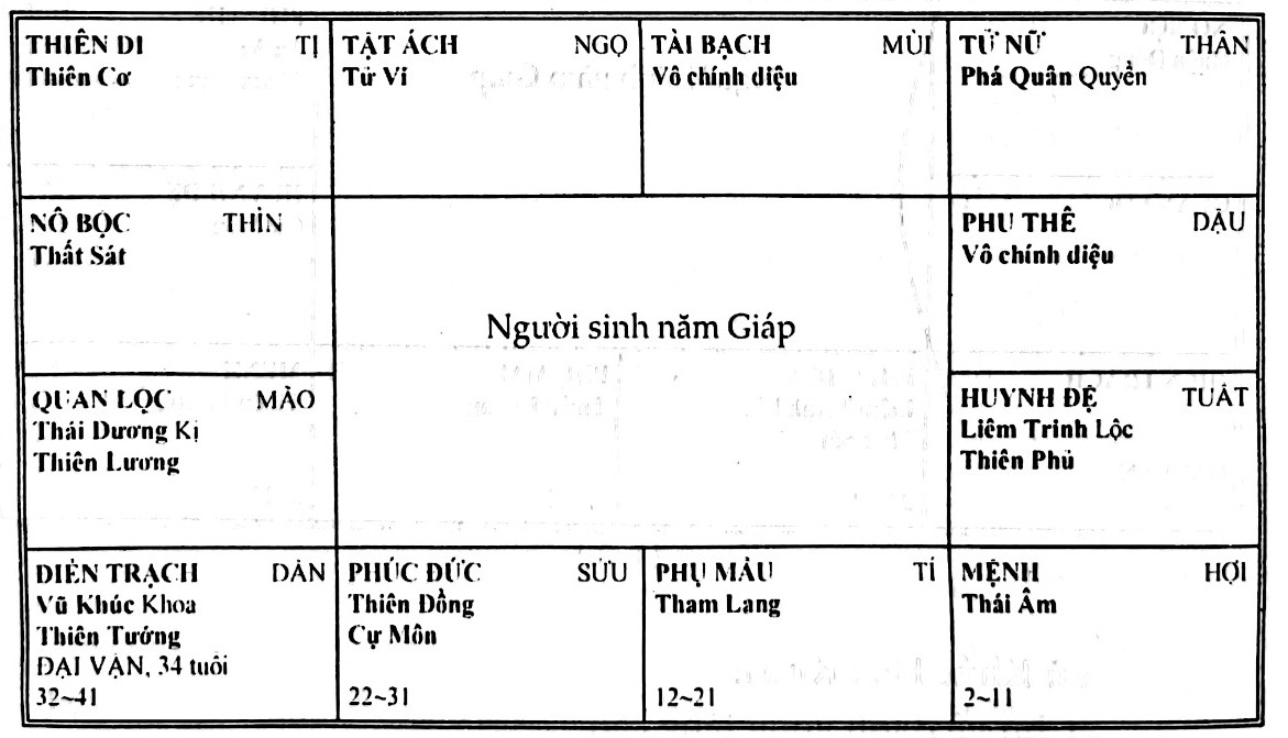 - Vũ Khúc Hóa Khoa [năm sinh] tọa cung mệnh, thích hợp thi tuyển, tuyển cử, dễ được bầu chọn, trúng tuyển.