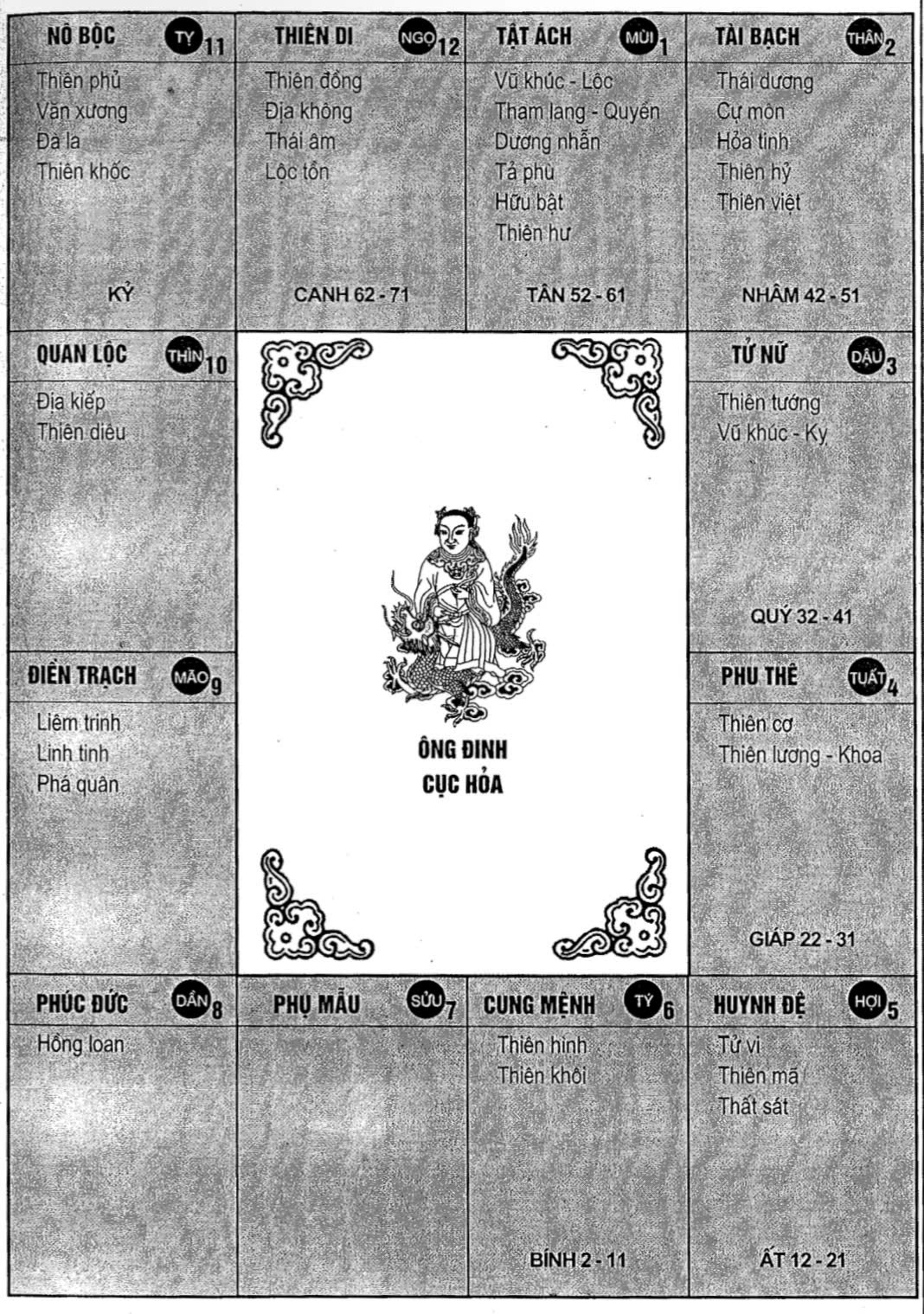 Ông Đinh sinh giờ Tỵ, ngày 21, tháng 4, năm Dân quốc thứ 38, có bàn mệnh như sau: