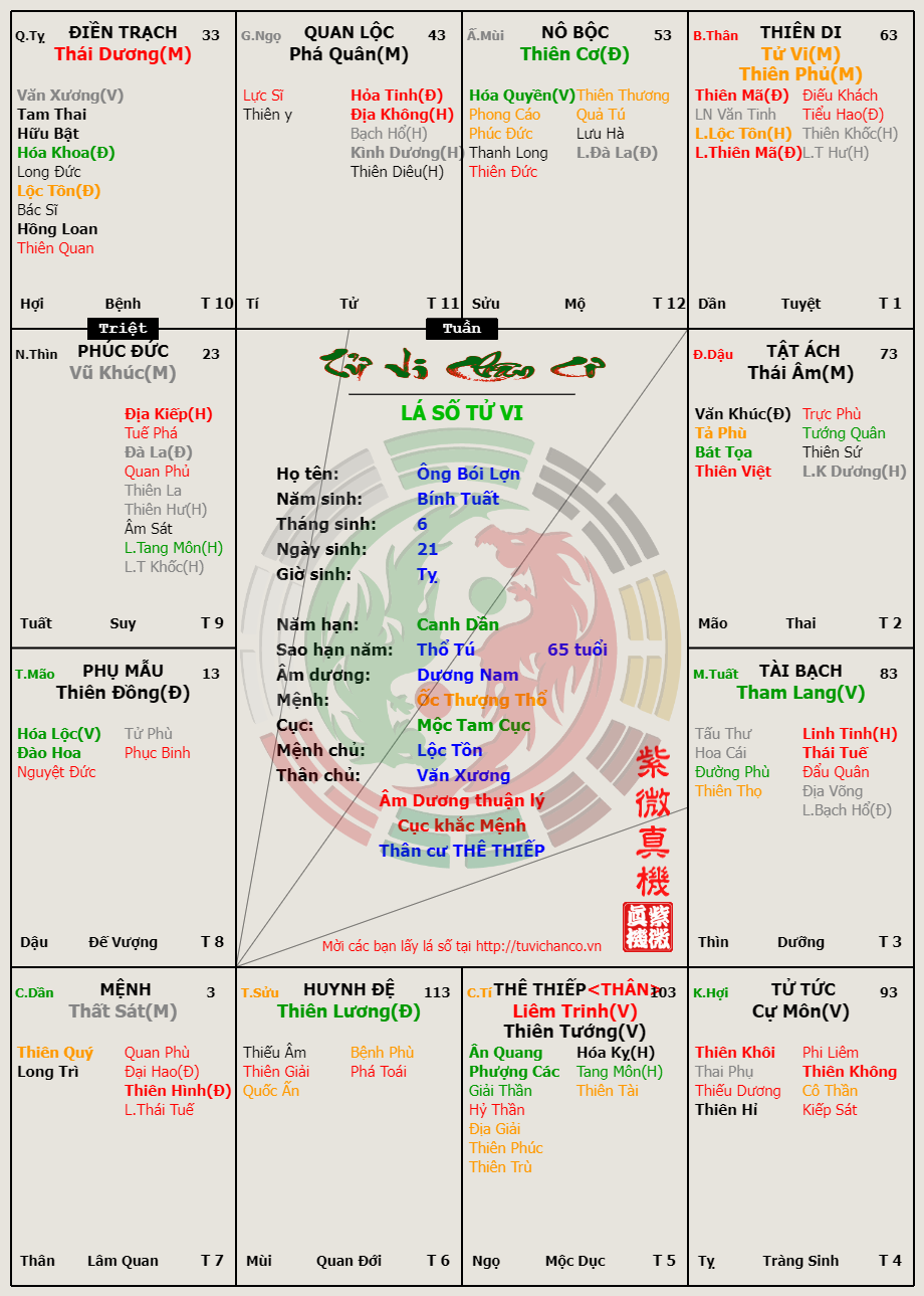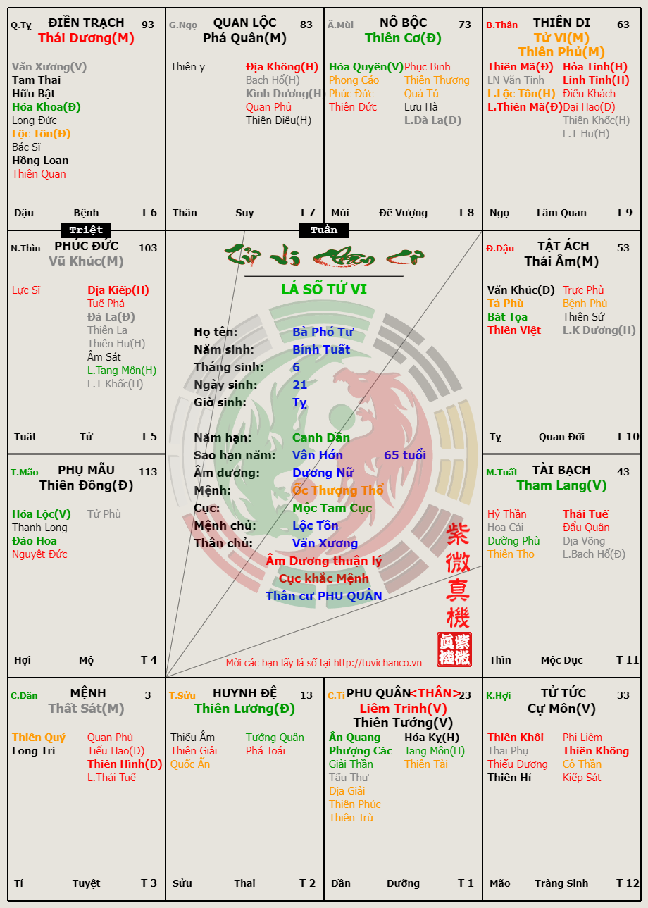 Lá số Tử Vi - Cụ Bà Phó Tư