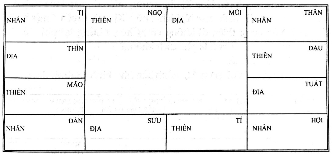 - Do phát xuất từ cung Mão trước tiên nhảy vào cung Sửu, là khoảng cách hai ô Mão và Sửu; vì vậy, đương nhiên phải theo thế mà chuyển, tất phải là khoảng cách hai ô Sửu và Hợi!