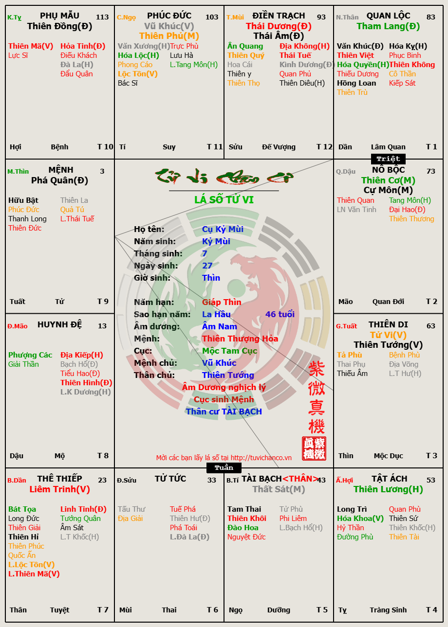 Lá số Tử Vi - Cụ Kỷ Mùi